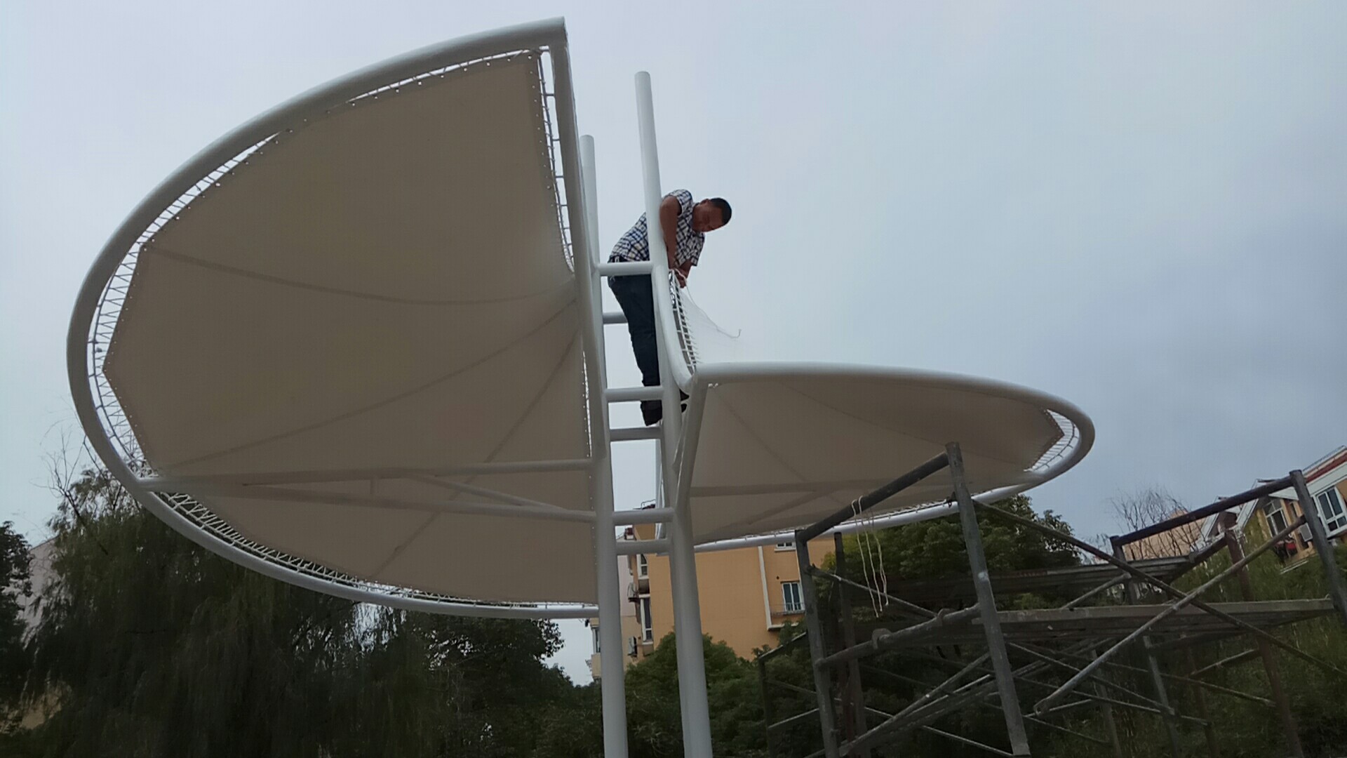 上海岐燦膜結(jié)構(gòu)工程有限公司是一家專(zhuān)業(yè)從事遮陽(yáng)系列的研發(fā)、設(shè)計(jì)、制作、安裝及售后的專(zhuān)業(yè)公司。公司成立以來(lái),主要經(jīng)營(yíng)膜結(jié)構(gòu)景觀系列、遮陽(yáng)蓬系列、膜結(jié)構(gòu)車(chē)棚系列、雨篷系列、推拉篷系列、玻璃雨棚系列、休閑傘系列、帳篷系列、活動(dòng)棚系列、戶外廣告、燈箱等。經(jīng)過(guò)十多年的不斷發(fā)展,業(yè)務(wù)已遍及上海,浙江,江蘇,安徽等地。